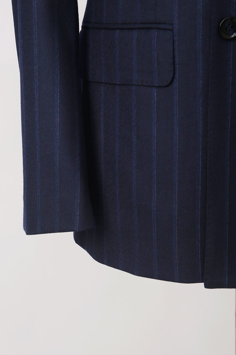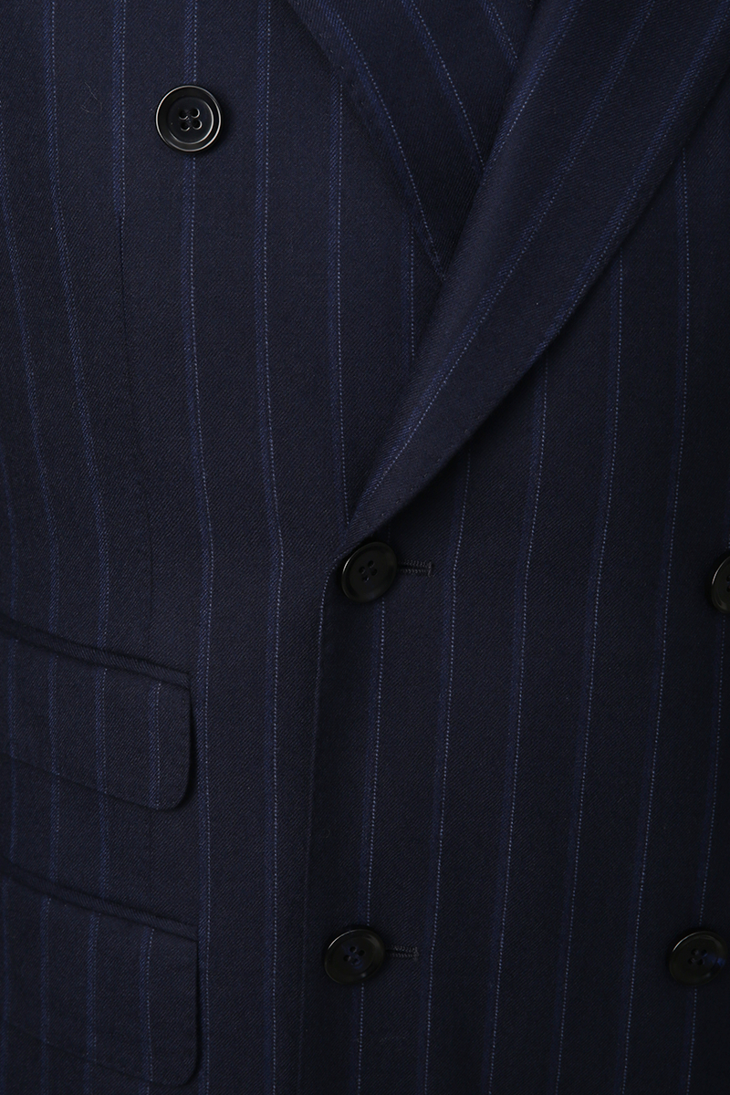 A sharp navy double-breasted pinstripe suit tailored for timeless elegance and modern authority.