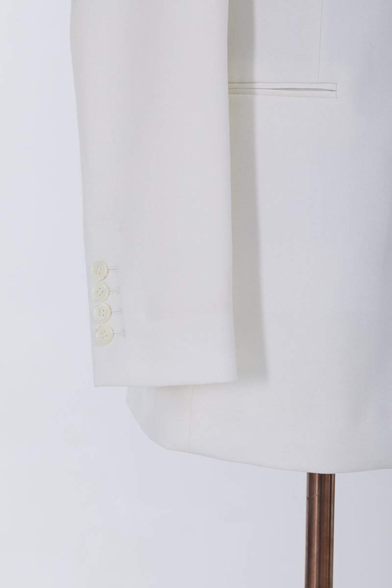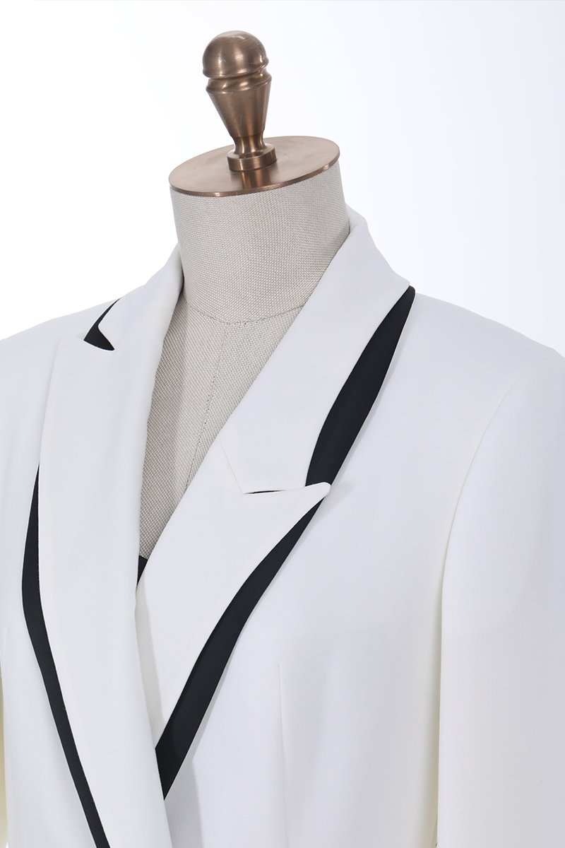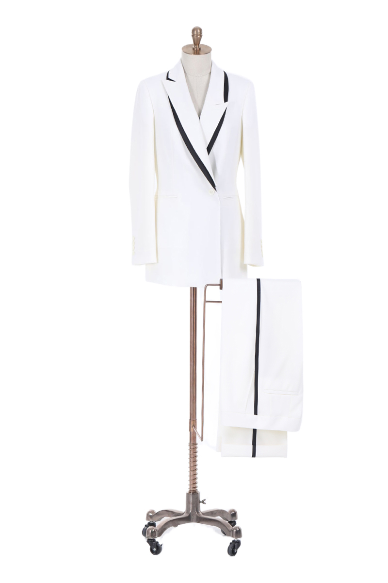 Crisp white tailoring with bold black contrast — a striking suit designed for elegance, versatility, and modern power dressing.